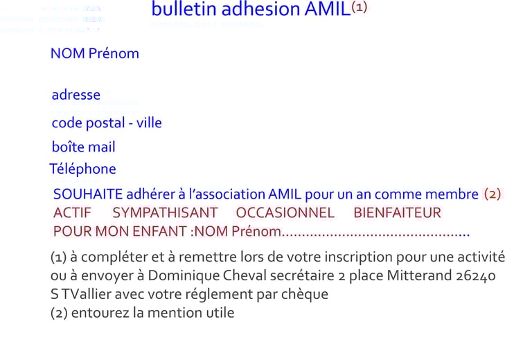 Vous pouvez adhérer à l’association, sur place, la maison des associations dans tous les cas ou presque au moment de l’inscription à un des ateliers ou stages, ou par courrier en utilisant le formulaire ci-dessous. Mais vous n’êtes pas obligé de faire partie d’une « activité » pour adhérer à notre association. Il faut rappeler que les adhésions sont le seul moyen de vivre pour une association, hormis les dons et les subventions…De plus en plus rares et réduits.